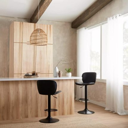 Black Faux Leather and Metal Bar Stool