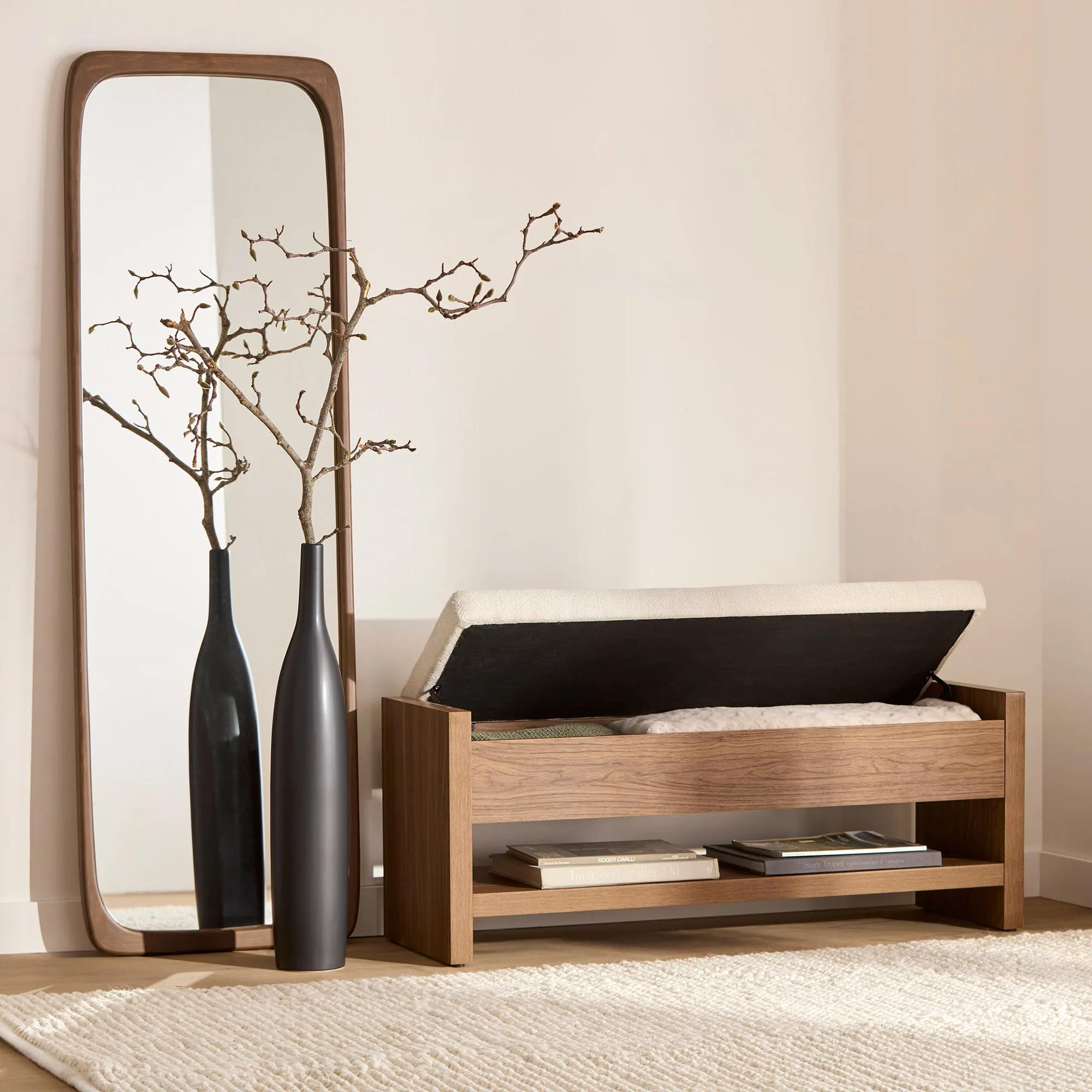Elevate your home with this elegant Fabric and Wood Bench, a perfect blend of comfort and timeless design. Ideal for entryways, living rooms, or bedrooms, it adds a touch of sophistication while providing a cozy spot to relax.