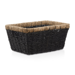 This black woven Beige fiber basket perfectly blends modern and boho styles. This rectangular basket is made from black woven Beige fibers giving it a sleek and sophisticated look. The raw hemp trim around the edge adds a Brownic charm making it the perfect addition to any home. This basket will make a statement whether you use it for storage or as a decorative piece. So why wait? Add this unique and stylish basket to your home today!