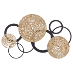 This unique wall decoration blends the raw elegance of metal with the natural warmth of rattan, creating a harmonious and contemporary circular composition. A beautiful way to add texture and character to your walls.